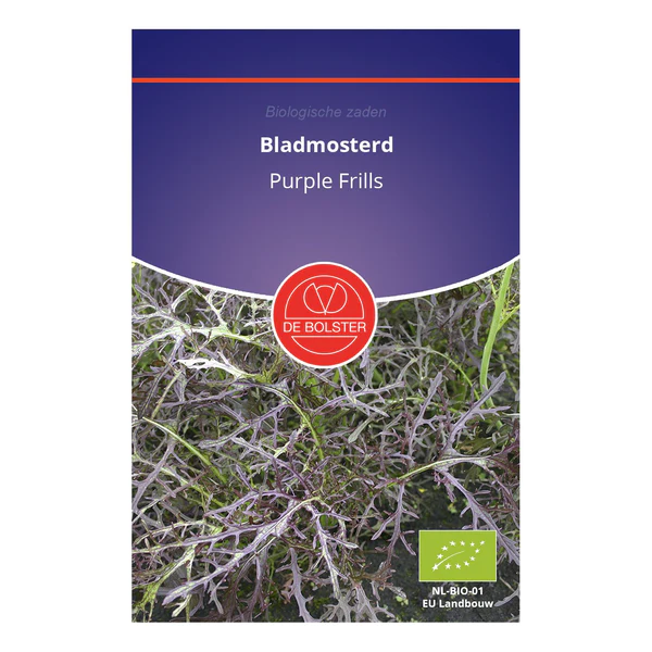 Met één zakje bladmosterd ‘Purple Frills’ kun je ongeveer 2 vierkante meter oogsten. Het ras is ook geschikt om als babyleaf te consumeren. De bladmosterd is paars van kleur en heeft een licht pittige smaak.
