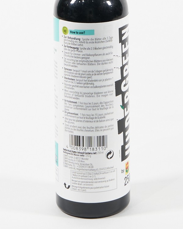 Gebruik de Undergreen Green Repair spray wanneer de bladeren van je plant geel worden. Het geel kleuren van de bladeren betekent namelijk dat je plant 2 belangrijke stoffen tekort komt, ijzer en mangaan. De spray vult dit aan en wordt snel opgenomen via de bladeren. Hierdoor hebben je planten snel weer hun gezonde groene kleur terug.