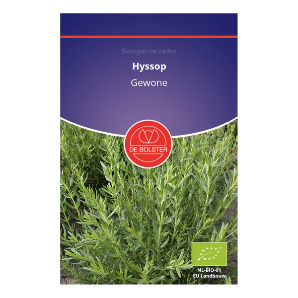 Hyssop is een struikachtige vaste plant die zowel culinaire als medische voordelen biedt. Als de plant volwassen is, kan hij tot 50 cm hoog worden. Op dat moment kunnen de bladeren en jonge, witte scheuten worden geoogst. Naast de voordelen voor mensen dient de plant ook als bestemming voor insecten als hij half juli bloeit. Eén zakje Hyssop is voor circa 20m2, en de plantafstand bedraagt 20×10 cm.