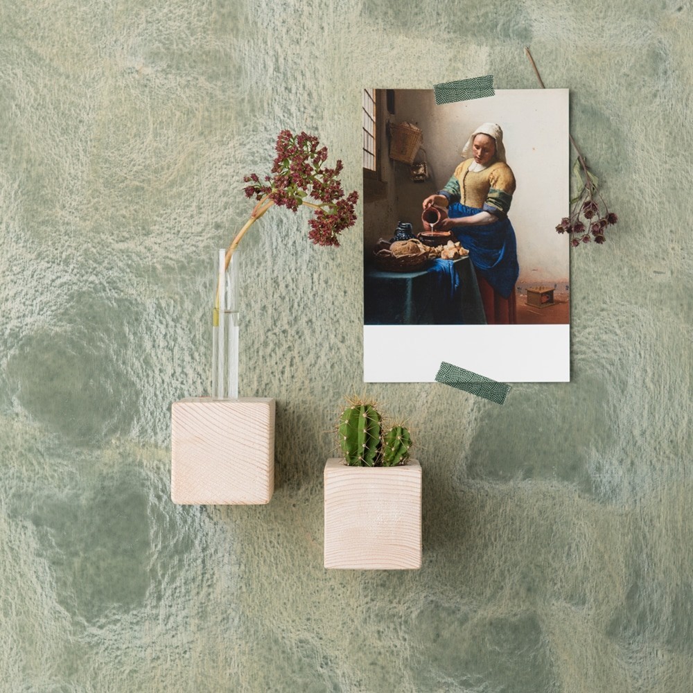 Deze handgemaakte blokjes voor aan de muur kun je gebruiken om stekjes of miniplantjes mee in de spotlight te zetten. Een set bestaat uit twee blokjes, waarvan één met reageerbuisje en één met een holte om een plantje in te stoppen. Ook leuk om cadeau te geven.